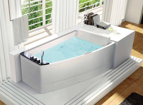 Vasca idromassaggio angolare in PMMA/ABS colore bianco rinforzata in fibra di vetro. Certificata CE e TUV (ente certificatore tedesco). Garanzia 2 anni.